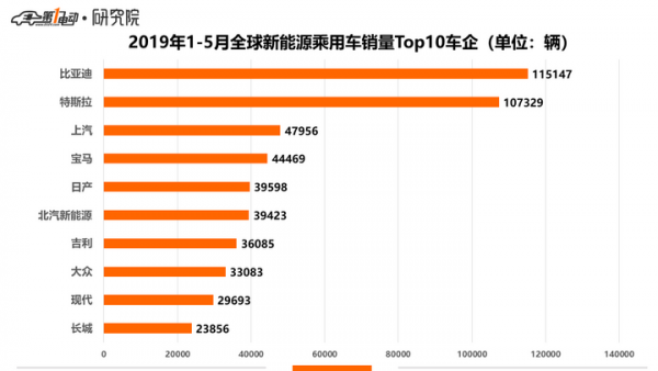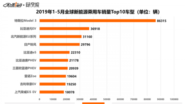 特斯拉Model 3依然傲冠群雄,5月當(dāng)月和2019年1-5月累計(jì)銷量排名均遙遙領(lǐng)先。