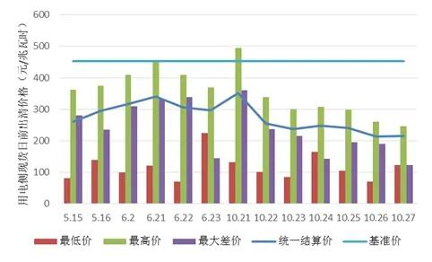 圖2 南方(以廣東起步)試點結算試運行用電側現貨日前出清價格
