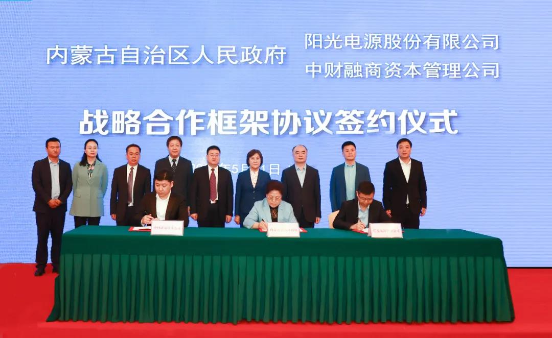 5月21日,陽光電源與內(nèi)蒙古自治區(qū)人民政府、中財融商在北京簽署戰(zhàn)略合作協(xié)議。內(nèi)蒙古自治區(qū)黨委副書記、自治區(qū)主席布小林,中國光伏行業(yè)協(xié)會理事長、陽光電源董事長曹仁賢等出席儀式并見證簽約。內(nèi)蒙古自治區(qū)副主席艾麗華、陽光新能源公司總裁張許成、中財融商董事長馮大任代表各方簽約。