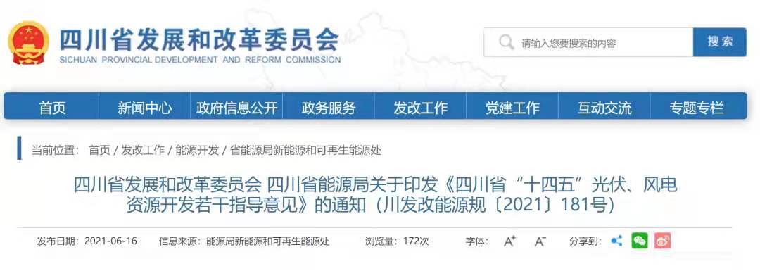 四川省發(fā)展和改革委員會 四川省能源局關于印發(fā)《四川省“十四五”光伏、風電資源開發(fā)若干指導意見》的通知