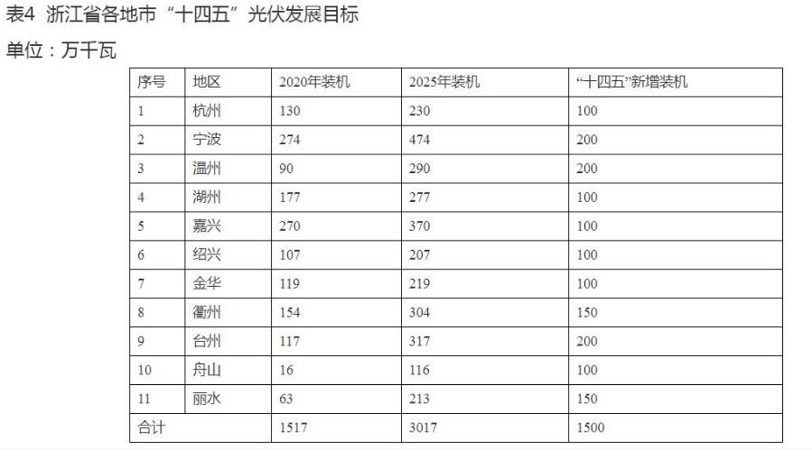 6月23日,浙江省發(fā)改委、能源局正式發(fā)布《浙江省可再生能源發(fā)展“十四五”規(guī)劃》(以下簡稱《規(guī)劃》),提出大力發(fā)展風電、光伏,實施“風光倍增計劃”,繼續(xù)推進分布式光伏發(fā)電應用,到“十四五”末,力爭浙江省光伏裝機達到2750萬千瓦以上,新增裝機在1200萬千瓦以上,其中分布式光伏新增裝機超過500萬千瓦,集中式光伏新增裝機超過700萬千瓦。
