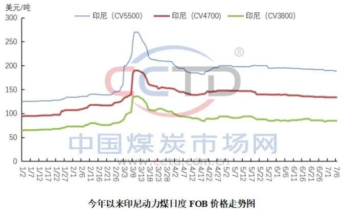 從下圖中可以看出,當前印尼煤價雖然仍處高位,但是從4月下旬起開始穩中調整,目前基本持穩運行。