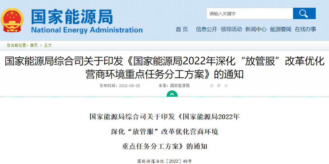 國家能源局2022年深化“放管服”改革優(yōu)化營商環(huán)境重點任務(wù)分工方案
